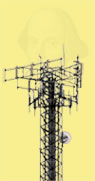Antenna tower with Shakespeare hovering above Reviews of Shakespeare plays staged as radio broadcasts, internet podcasts, and via other audio mediums.